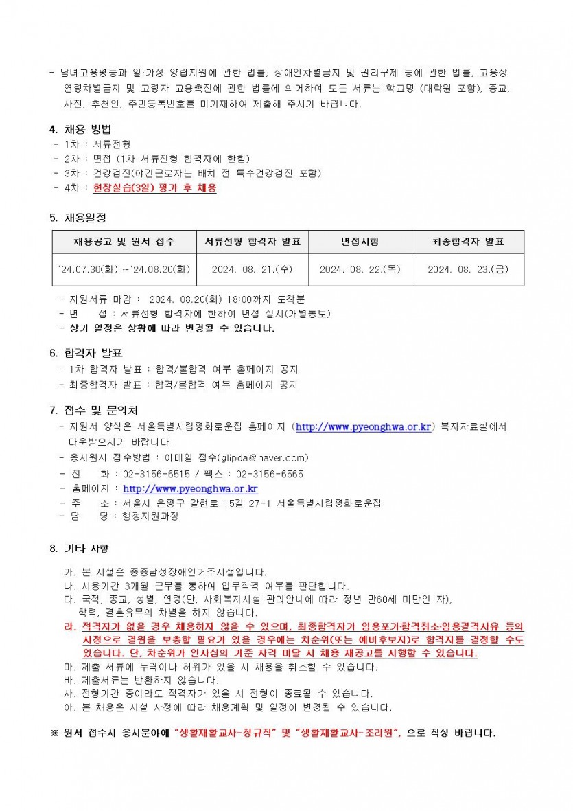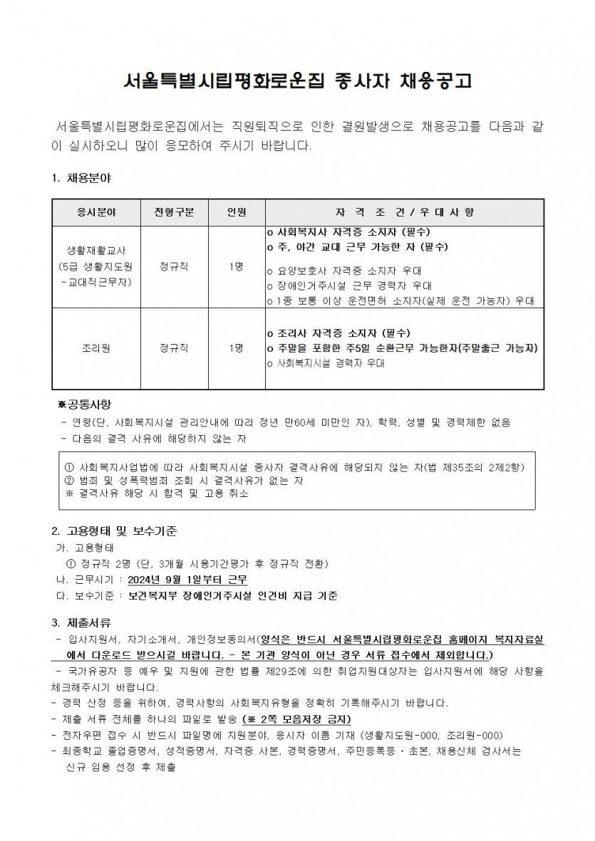 2024년 제8차 종사자채용 모집공고 페이지 정보 작성자 한동주 작성일 24-07-30 18:02 조회 18,371회 댓글 0건 첨부파일 파일 시립평화로운집 입사지원서이력서,자기소개서및개인정보동의서.hwp (22.5K) 178회 다운로드 DATE : 2024-07-30 18:02:25 본문 이전글 다음글 목록 답변