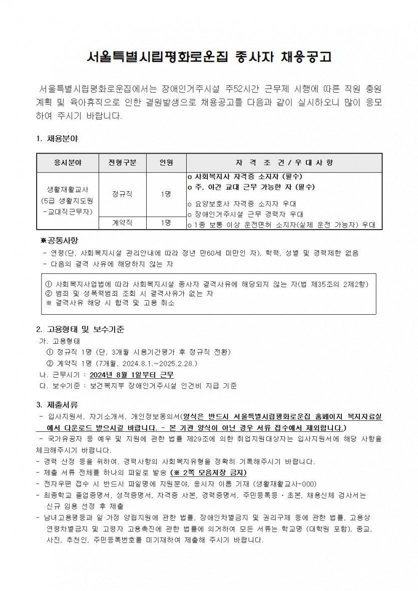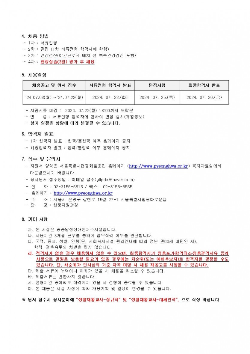 평화로운집 7차 종사자채용 공고 페이지 정보 작성자 한동주 작성일 24-07-08 13:33 조회 18,420회 댓글 0건 첨부파일 파일 2024년-생활지도원-7월.hwp (36.5K) 160회 다운로드 DATE : 2024-07-08 13:33:49 파일 시립평화로운집 입사지원서이력서,자기소개서및개인정보동의서.hwp (22.5K) 124회 다운로드 DATE : 2024-07-08 13:33:49 본문 이전글 다음글 목록 답변