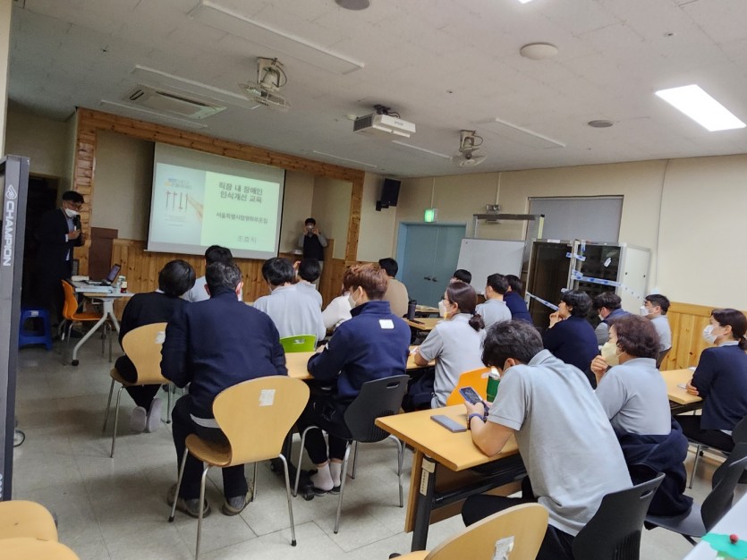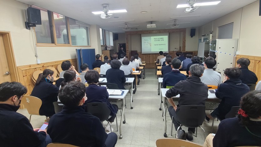 공지 | 장애인 인식 개선 교육 페이지 정보 작성자 장설궁 작성일 23-03-17 15:47 조회 7,779회 댓글 0건 본문 장애감수성을 키우고 장애공감문화 조성과 장애유무를 떠나 "우리는 모두 사람이니까" 라는 관점을 통해 포용사회 실현에 기여하기 위한 장애인 인식개선교육을 3월 15일 실시하였습니다. 열강을 해주신 조효식, 장양숙 강사님과 경청해주신 선생님들 감사합니다. 이전글 다음글 목록