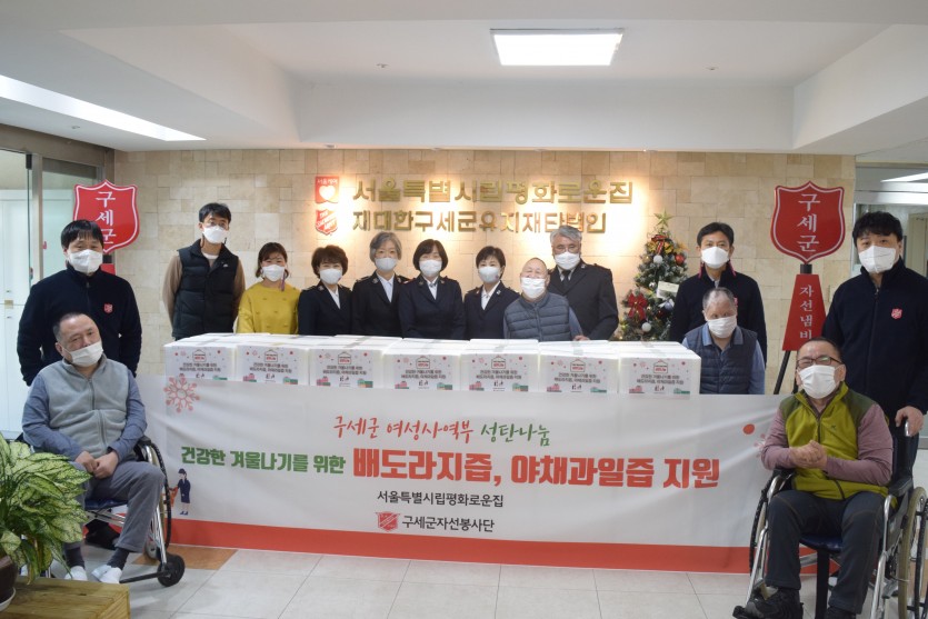 후원자·봉사자 이야기 | 구세군여성사역부 *구세군자선봉사단* 후원물품 전달식 페이지 정보 작성자 박상은 작성일 21-12-20 13:54 조회 11,364회 댓글 0건 본문 구세군 여성사역부 성탄나눔 2021.12.17.(금)평화로운집 가족들이 추운 겨울을 더 따뜻하게, 또 더 건강하게 보낼 수 있도록구세군자선봉사단에서큰 선물을 들고 찾아와 주셨습니다.춥게, 또 어둡게 느껴질 수 있는 요즘같은 시기에밝은 희망을 전달해주셔서 진심으로 감사드립니다.전달해주신 배도라지즙과 야채과일즙 드시고 평화로운집 가족 분들 모두 힘이 났습니다^-^ 이전글 다음글 목록