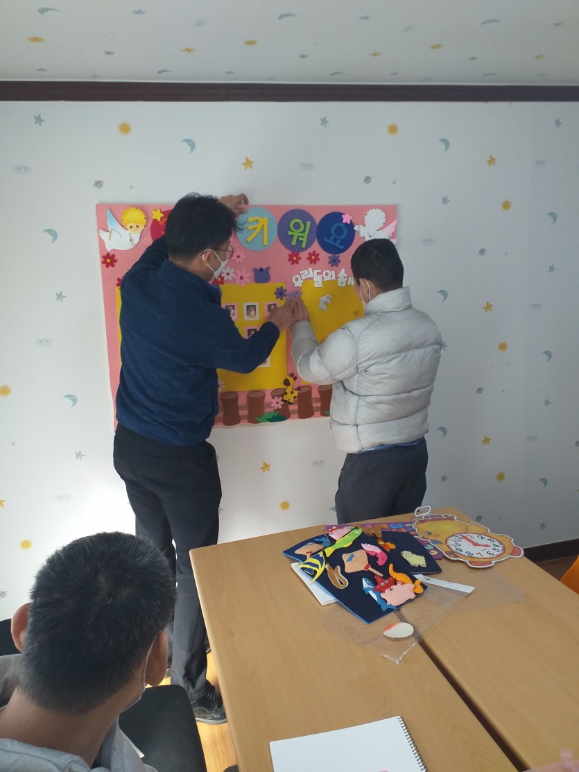 거주인 이야기 | 평화로운학교 기초학습 시작 페이지 정보 작성자 한동주 작성일 22-03-10 16:04 조회 10,840회 댓글 0건 본문 3월부터 평화로운학교가 진행됩니다.평화로운학교는 지적장애인들을 위한 교과과정입니다. 기초학습, 동화구연, 건강생활, 사회체험 및 숲체험등 다양한 커리큘럼으로 1년동안 운영이 됩니다. 평화운학교 학생들을 위한 응원 부탁드립니다.* 사진은 3월8일 사량채에서 진행된 기초학습 수업입니다. 선생님들의 수고 부탁드립니다. 이전글 다음글 목록