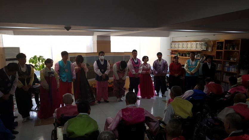 오전에는 차례상을 차리고 직원과 거주인 모두 한복으로단장한 후 조상에게 예를 다하고