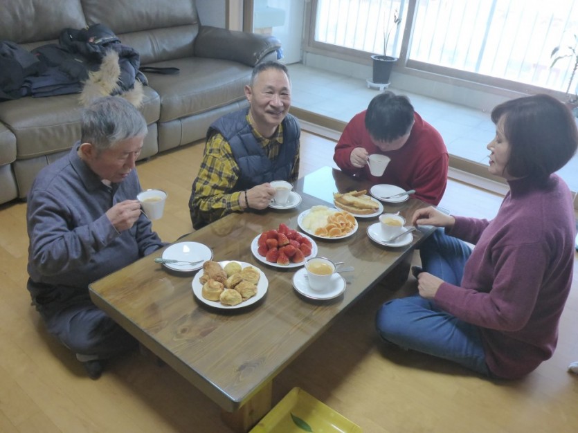 식탁에 둘러앉아 먹는 식사는 꿀 맛 이었습니다.