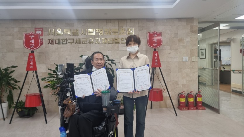 공지 | 우리하나은평IL센터 협약식 페이지 정보 작성자 서상진 작성일 25-04-22 15:20 조회 4,206회 댓글 0건 첨부파일 본문 일시: 2025년 4월 22일(화) 14:00장소: 서울특별시립평화로운집 1층 회의실내용: 장애인자립생활센터 거주시설연계사업 협약식참석자: 김순희 사무국장, 서상진 상담평가요원 모경훈 소장, 신상원 담당자 이전글 다음글 목록