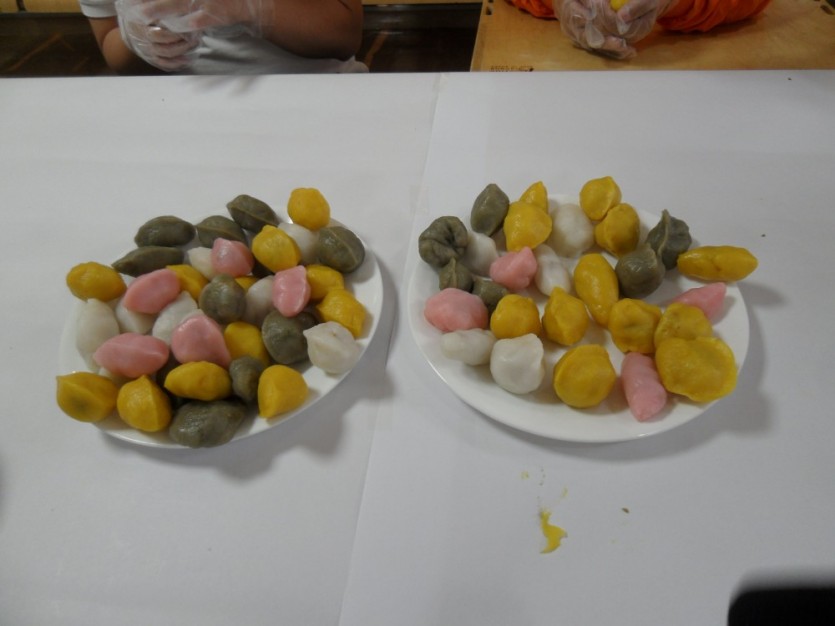 송편을 서로 비교해 가며 빚어 놓은 송편이 먹기에 아까웠지만 맛있게 나누어 먹었습니다.