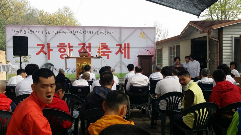 지역주민들과 거주인들과 봉사자들과 함께 장기자랑을 하며