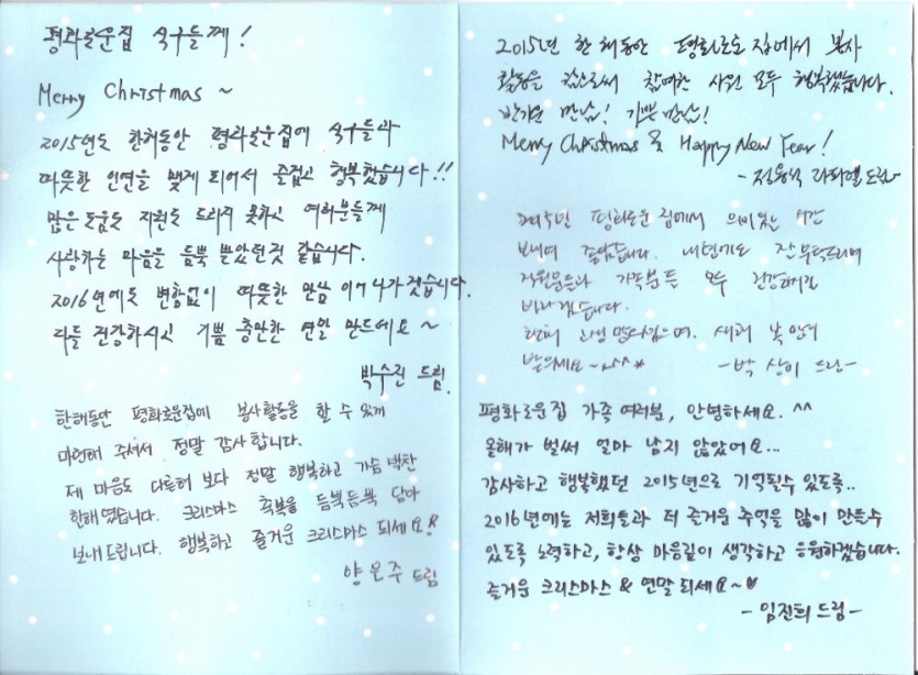 유세스파트너스 자원봉사자들께서 성탄카드를 보내주셨습니다.