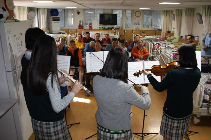 하나고등학교 학생으로 구성된 '프로보노' 클래식 연주 봉사단에서 평화로운집 가족분들의