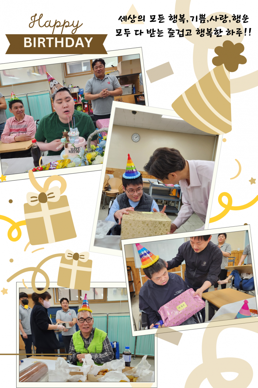 거주인 이야기 | 5월 생신잔치 페이지 정보 작성자 장설궁 작성일 24-05-15 18:05 조회 7,775회 댓글 0건 본문 5월 생신잔치가 13일 치킨과 아이스크림케잌 들로 진행 되었습니다. 당신이 아름다운 이유는 다른 사람들 보다 멋있고 능력있고 매력적이라서가 아닙니다.이 세상에 당신이 존재하기 때문에 당신밖에 없기 때문입니다.생신축하드립니다. 이전글 다음글 목록
