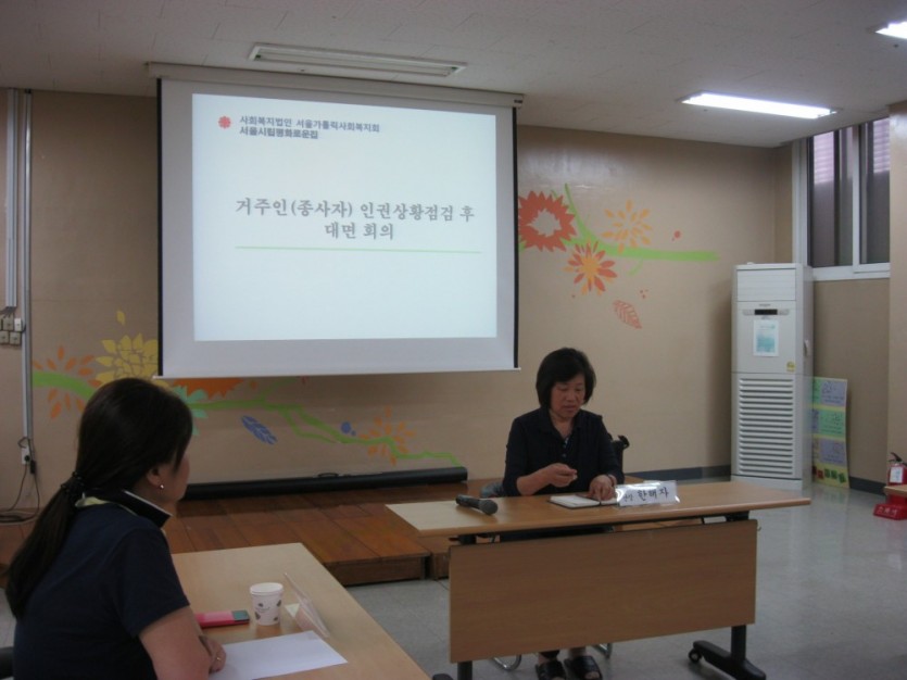 거주인과 종사자 인권상황점검을 토대로 회의를 진행하였습니다.