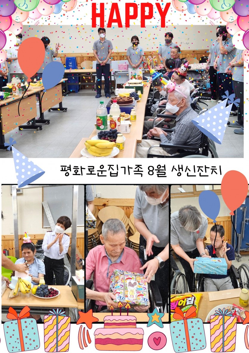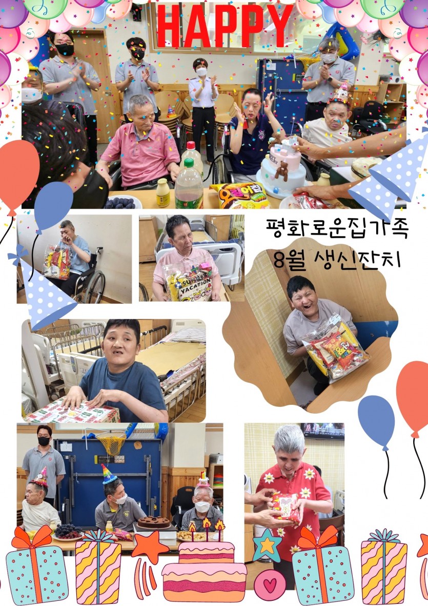 거주인 이야기 | 8월 생신잔치 페이지 정보 작성자 장설궁 작성일 23-08-08 15:39 조회 10,658회 댓글 0건 본문 평화로운집 가족의 8월 생일 잔치^^매년 돌아오는 날이지만항상 새로운 날이기도 하지요?연일 폭염이 지속되어 몸도 마음도 지치지만오늘만큼은 더 많이 웃고, 더 많이 행복하고, 더 많이 사랑받는 날되세요생일을 축하드리며 매일이 기쁨으로 가득 찬 행복한 날들이길 바랍니다. 이전글 다음글 목록