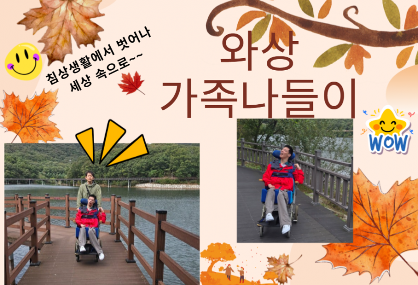 거주인 이야기 | 2025 와상 가족 나들이 페이지 정보 작성자 장설궁 작성일 25-10-30 09:41 조회 2,090회 댓글 0건 본문 와상가족나들이 침상에서만 지내다 첫 외출을 합니다.선생님들과 함께 바깥으로 나서는 순간, 상쾌한 바람이 얼굴을 스치니 웃음이 절로 납니다.오랜만에 보는 주변의 풍경은 새롭게만 느껴집니다.오늘의 나들이는 오래도록 기억될 소중한 시간이 되었습니다. 감사합니다. 이전글 다음글 목록