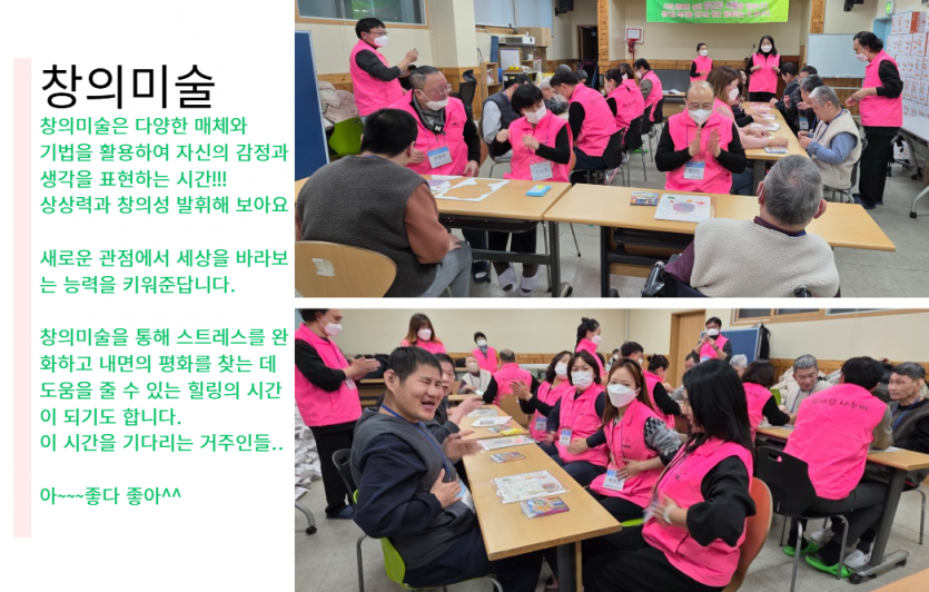 후원자·봉사자 이야기 | KCU참사랑나누미 창의미술활동 페이지 정보 작성자 장설궁 작성일 26-01-07 13:35 조회 1,310회 댓글 0건 본문 함께교육해주신 참사랑나누미 KCU 에게감사의 마음을 전합니다.감사합니다. 다음달에 뵈어요~~ 이전글 다음글 목록