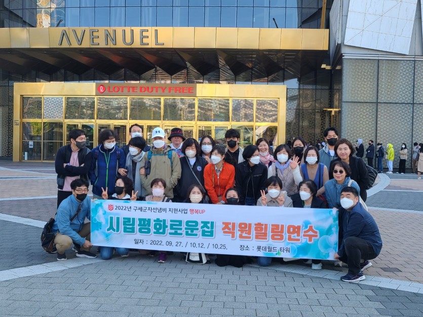 2022년 직원연수 페이지 정보 작성자 장설궁 작성일 22-10-13 16:12 조회 11,641회 댓글 0건 첨부파일 파일 2차직원연수0.5.gif (11.3M) 125회 다운로드 DATE : 2022-10-13 16:39:03 본문 2022년 9월 27일 원장님,10월 12일 국장님, 10월25일 직원과 함께한 직원교육...저희평화로운집 직원93분들이 약 30여분씩 3차에 걸쳐 직원연수가 있었습니다. 2022년 기준 대한민국 최고층 건물이자 세계에서 5번째로 높은 건물인 서울스카이를 다녀왔습니다. 중식후 영화관람과 롯데어드벤처투어가 있었구요~~갑자기 쌀쌀해진 날씨에 모든 직원분들 모~두 참석해 주셔서 감사합니다~~ 이전글 다음글 목록