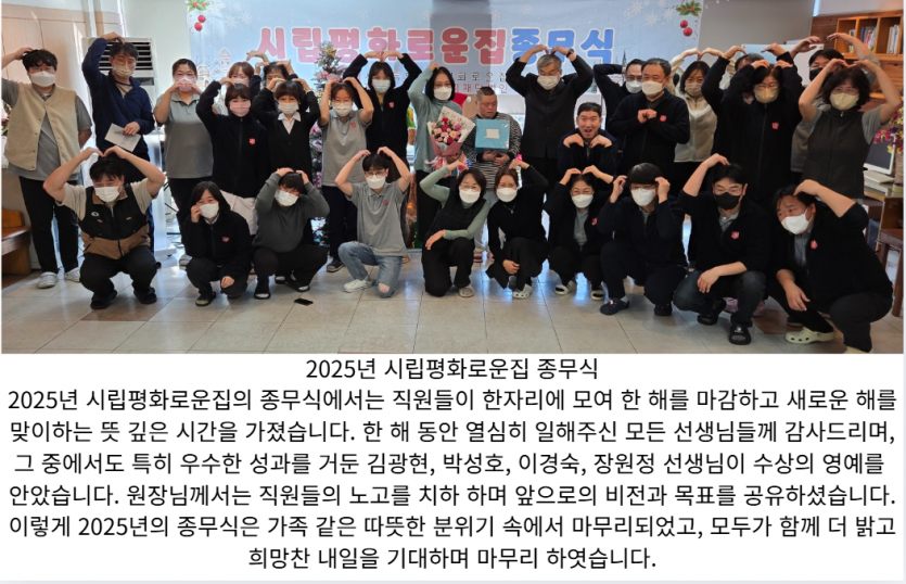 2025년 마무리 2026년의 시작 페이지 정보 작성자 장설궁 작성일 26-01-04 15:53 조회 790회 댓글 0건 본문 한 해의 끝은 또 다른 시작입니다.2025년의 모든 순간이 여러분을 더 단단하게 만들었기를 바라며,2026년에는 더 큰 꿈과 더 깊은 행복이 여러분 곁에 머물기를 소망합니다.새로운 도전 앞에서도 용기와 희망을 잃지 않으시길 바랍니다.새해 복 많이 받으세요! 이전글 다음글 목록