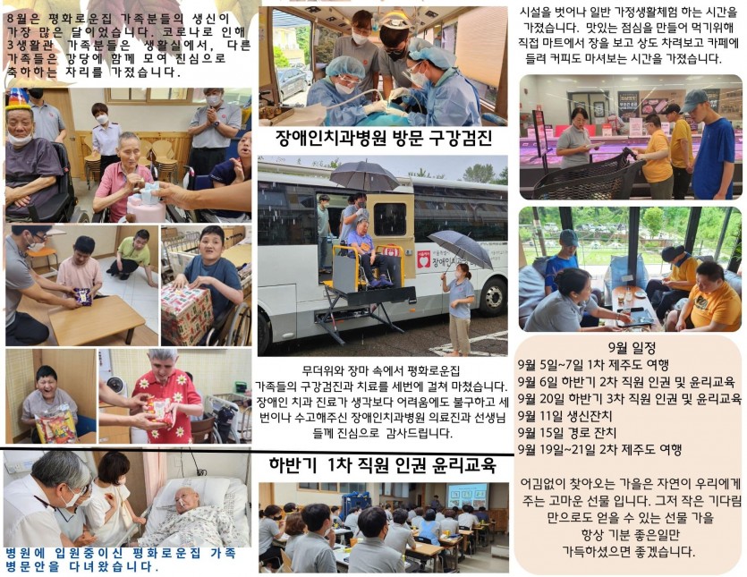 2023년 9월 후원 감사편지 페이지 정보 작성자 장설궁 작성일 23-09-01 10:13 조회 8,122회 댓글 0건 본문 즐거운 9월입니다. 무더위가 가득했던 여름이 조금씩 지나가고 신선함을 느낄 수 있는 날이 조금씩 가까워지는 것 같습니다.환절기 감기 유의하시고 즐거움 가득 기쁨 가득한 하루 보내시길 바라며평화로운집 9월 이야기 보내드립니다. ^^ 이전글 다음글 목록
