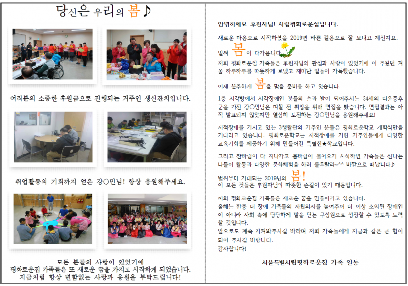 2019년 3월 후원자 감사편지 페이지 정보 작성자 박상은 작성일 20-09-11 11:30 조회 14,031회 댓글 0건 본문 늘 나눔으로 함께해주시는 후원자님께감사의 편지를 올립니다. 이전글 다음글 목록