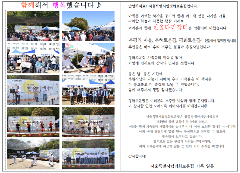 2019년 10월 후원자 감사편지_연합축제관련 페이지 정보 작성자 박상은 작성일 20-09-11 12:01 조회 14,349회 댓글 0건 본문 늘 나눔으로 함께해주시는 후원자님께감사의 편지를 올립니다.첨부파일 열람 부탁드립니다♡ 이전글 다음글 목록