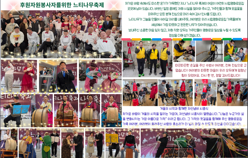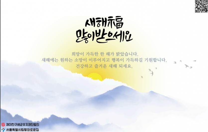2026년 시립평화로운집 1월 후원감사편지 페이지 정보 작성자 장설궁 작성일 26-01-04 09:52 조회 893회 댓글 0건 본문 2026년 병오년이 밝았습니다. 지난 한 해 보내주신 배려에 깊이 감사드리며, 새해에도 건강과 평안이 늘 함께하시길 기원드립니다.병오년 새해를 맞아 가정에 행복이 가득하시고, 하시는 일마다 좋은 결실이 있기를 바랍니다. 이전글 다음글 목록